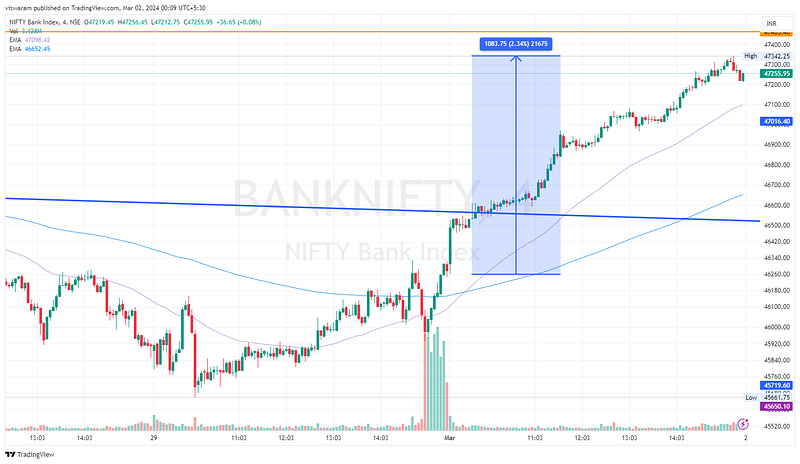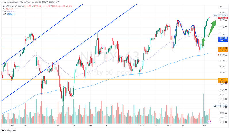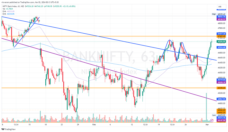 01 Mar ’24 — Nifty beats the double-top & goes GREEN — Nifty & BankNifty PostMortem Analysis