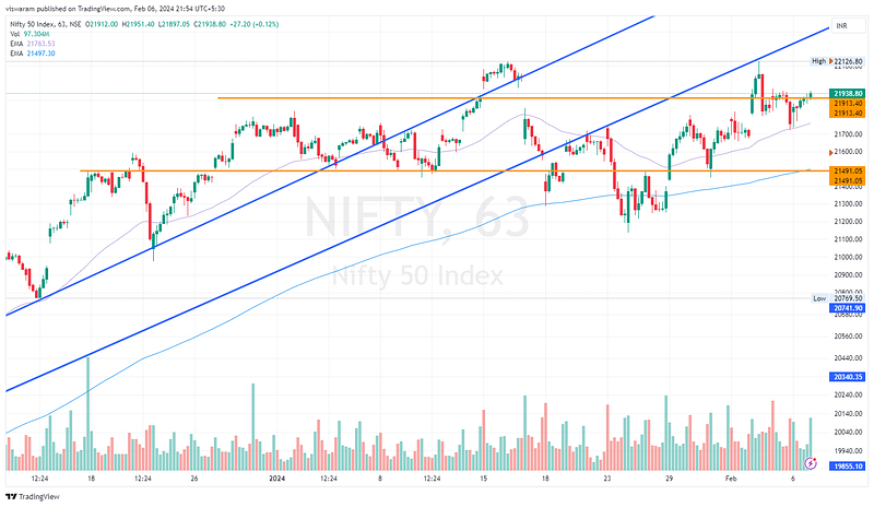 06 Feb ’24 — Nifty takes out the resistance of 21319 on lower TimeFrame — Nifty & BankNifty…