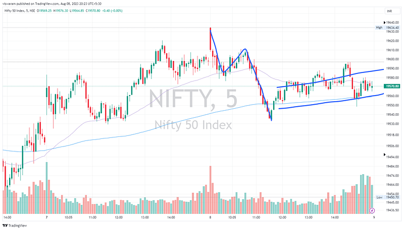Nifty made an interesting opening 2 hour price action today. With a good gap up opening and then a strong rejection at 19640 levels to hit an intraday low of 19533 by 11.35. The selling pressure was strong, but the financial sector did not lend support. NiftyIT was falling — but that got arrested and hence the reversal post 11.35.