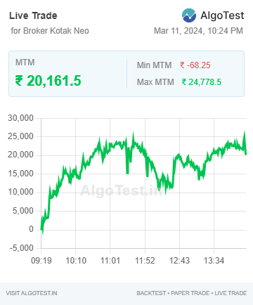 Our algo trades ended today with a gain of 20165. Manually squared off the trades at 14.21 just when the markets started to get volatile.