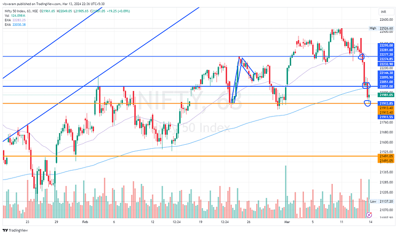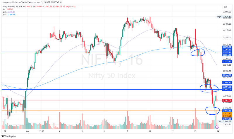 13 Mar ’24 — Nifty breaks 2 support, goes bearish today — Nifty & BankNifty PostMortem Analysis
