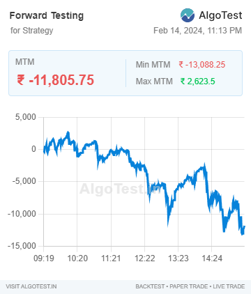 The climb of 670pts from 14.07 to 14.39 made all the difference today. It drove our algo into a tailspin and ensured that we booked the highest intraday loss till now. You might already know most algos prefer to play straddle or strangles and today being the expiry day created more trouble. The calls when sold were damn cheap and when the stop loss got hit — it appreciated more than 100 to 200%. Yesterday we pointed out the unusual skew in the PUT and CALL premiums, the calls staying cheap. Today we fell victim to that.
