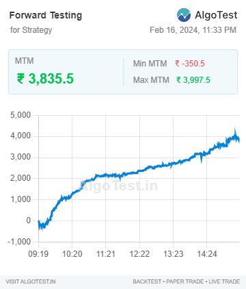 Our BankNifty algo trades ended today with a gain of 3835 points.