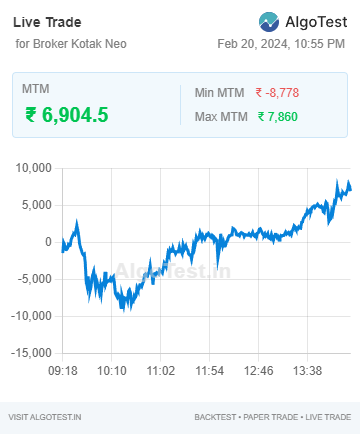 Our algo trades ended today with a gain of Rs6904. We stopped the algo at 14.24 as a breakout was looking imminent. We will have to backtest it tomorrow to see if it was the right decision.