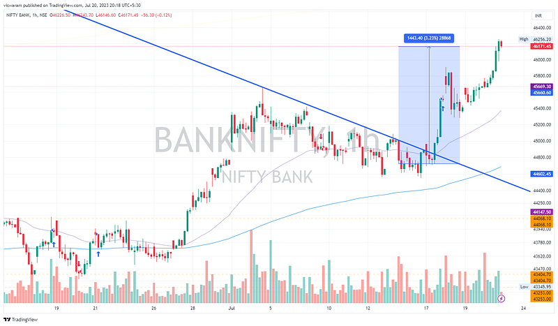 Banknifty also outperformed this week, between the last expiry & today it is up 1443pts ~ 3.23%.