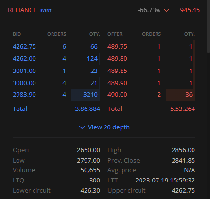 During the pre-open period till 09.15, Reliance settled for a price of 945 & we were all shocked. However the real pre-open for Reliance & Jio Financial price discovery was till 10.00 AM and it opened at a price of 2580 which was more or less what the participants were anticipating.