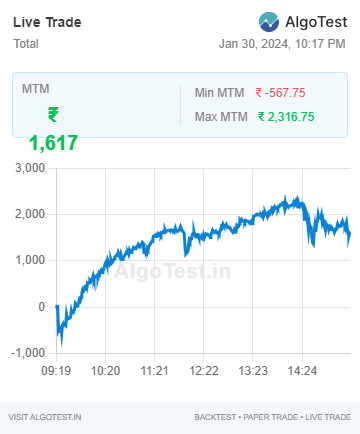 Our BankNifty algo trades ended today with a profit of 1617 per lot