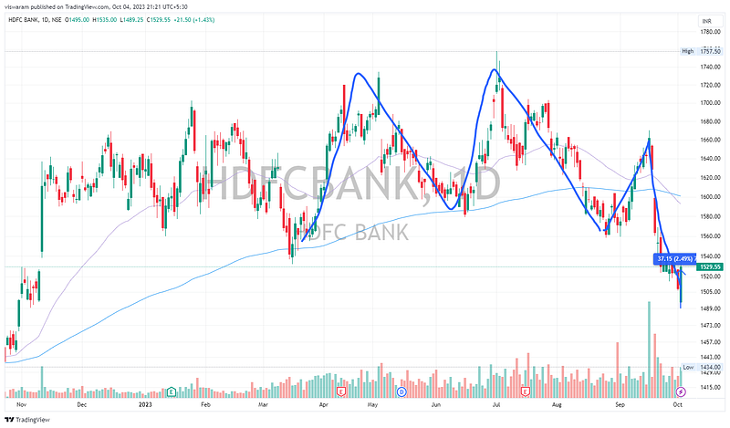 HDFC Bank is the main culprit. It went up 2.53% between open and 10.30. If you look at the daily candle — HDFC shows bearishness. Two strong double tops and then a lower high formation. The true free float weightage is 40.9% — source. Which means a small trigger could change the game.