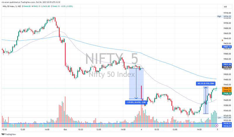 4th Oct ’23 — Super recovery in last 90mts — PostMortem on Nifty & BankNifty + HDFCBK spoils the…