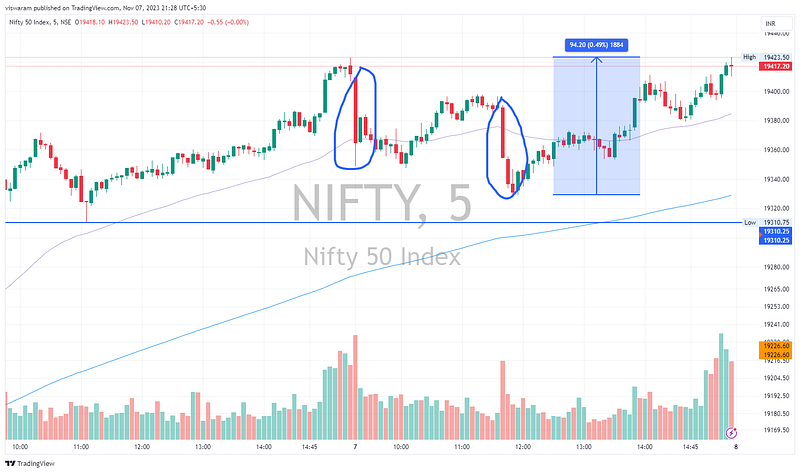 7th Nov ’23 — The 11.40 candle may have a story to tell — PostMortem on Nifty & BankNifty