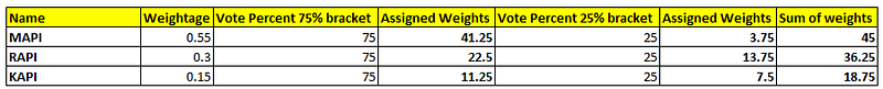 Case 3: 75% of voters preferred MAPI > RAPI > KAPI and the other 25% chose RAPI > KAPI > MAPI