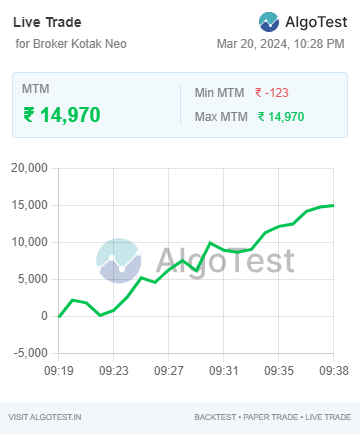 Our algo trades ended today with a gain of 14970 points. Sensing the situation getting a bit volatile, I manually squared off the positions at 09.38.