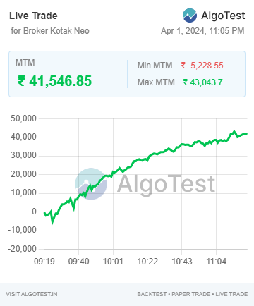 Our algo trades ended today with a gain of 41546 as I prematurely closed the trades at 11.22 today.