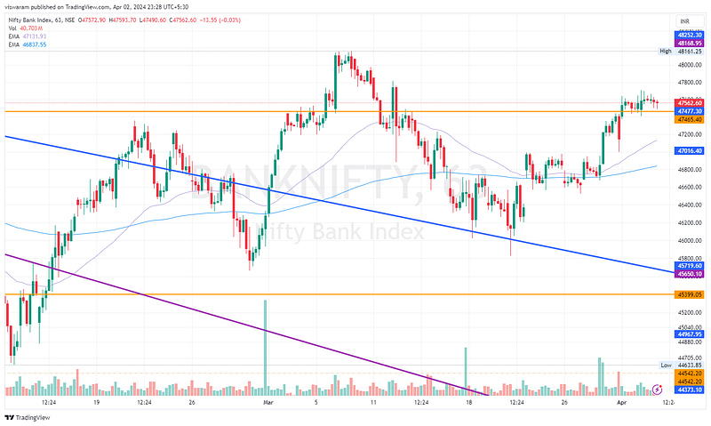 Nifty & BankNifty Analysis — 02 Apr 2024 — Flat day, consolidating or deciding to reverse?