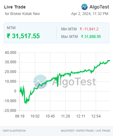 Our algo trades ended today with a gain of Rs31517, again I pulled the plug early to save the transaction costs and book 2/3rd of theoretical profits.