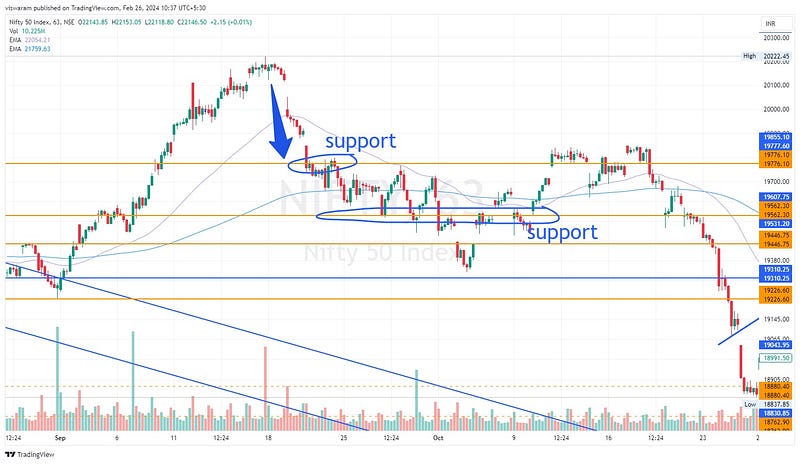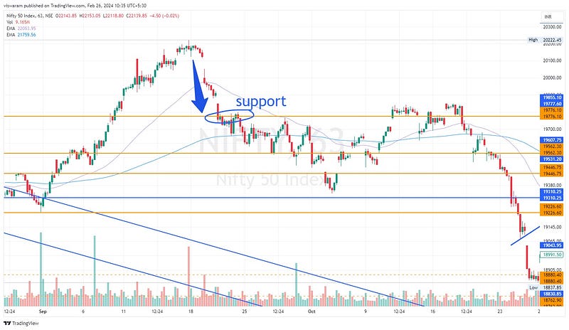 Now look at support2 at 19562 levels. the buyers were able to hold that position for quite a long.